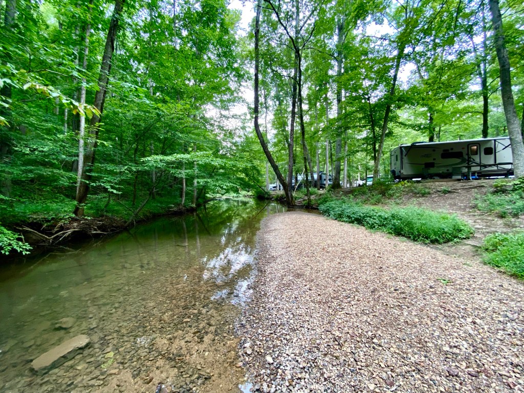 Our camper is to the right in this picture. All day long this stream was filled with the sounds of splashing and boisterous laughter! I snuck in for a photo opportunity between groups.