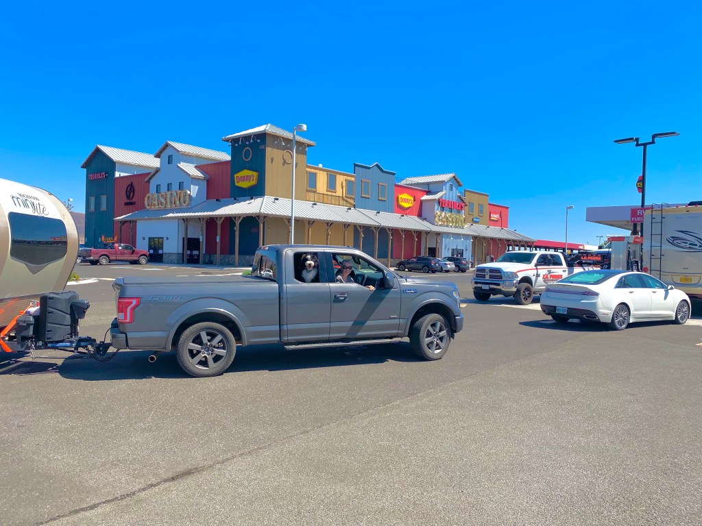 Truth!!! God was looking out for us! Harry is not one to play it safe with gas…he likes to wait until the bell rings on the truck to indicate low fuel but going through these low populated areas, he has made the concession to go in at a little under a 1/4 tank. For some reason, he felt the urge to get gas at us under 1/2 a tank. We rolled in…had to wait for a pump! I laughed and said you need to take our picture while we wait. It was such a cliché of every little town we drove through in Nevada! Casino, Casino!
