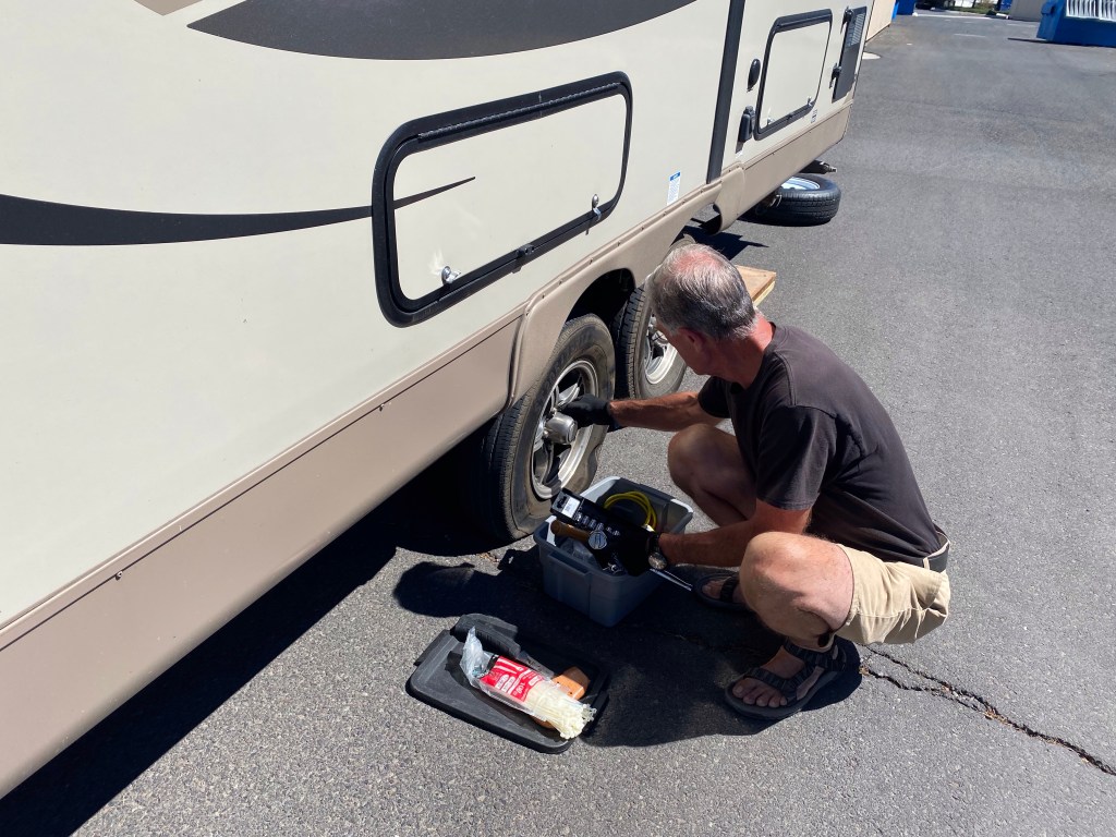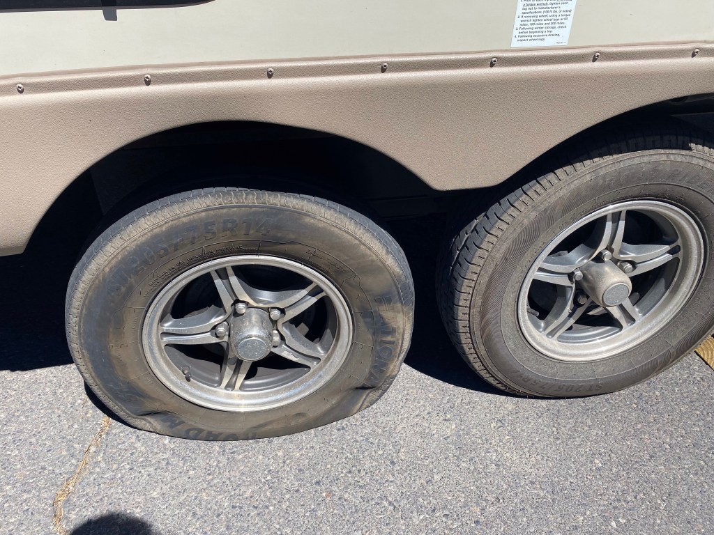 No problem…Harry will fix it…But no, when the tires were put on the guys at the shop had cinched them down so hard, Harry’s Jack was unable to budge it. We had several other people try to help…to no avail. Call AAA and we find we were only the “standard “ customer and they would only help the truck…😳 Finally, a tire service said they would come but they were backed up…it would be awhile. So three hours later we were on the road.