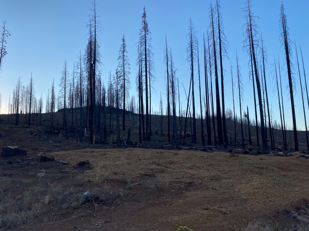 We drove through miles and miles of what I have pictured below! So very sad! We didn’t get in until dark, so we can’t even tell you what the campsite looks like in the light of day…We will tell you what we think when the sun rises but we are landed, the wheels aren’t rolling but the Dorr’s are rolling into bed! Night all! Thank you, God!