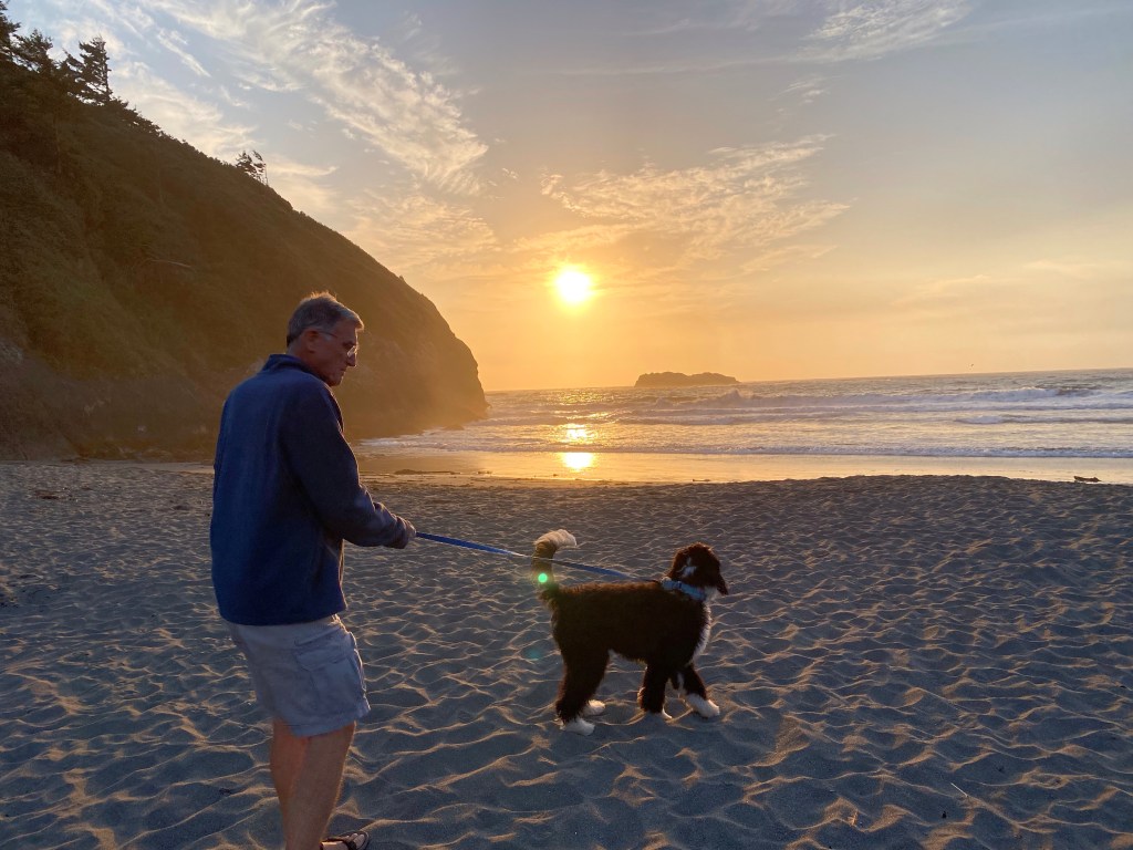 After a great day we decided to eat an early dinner and take Finn to see his first ocean. He loved it but went ballistic, he was so excited about the sand. He is getting more difficult to control when he gets excited.