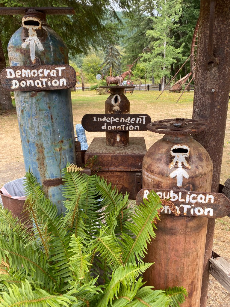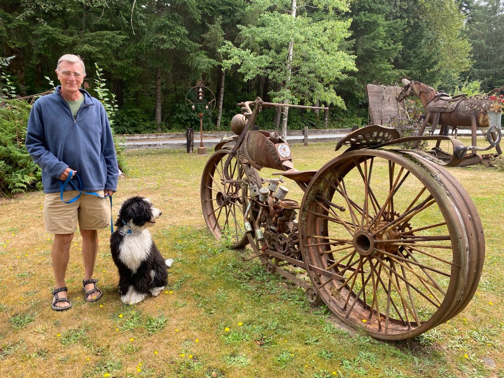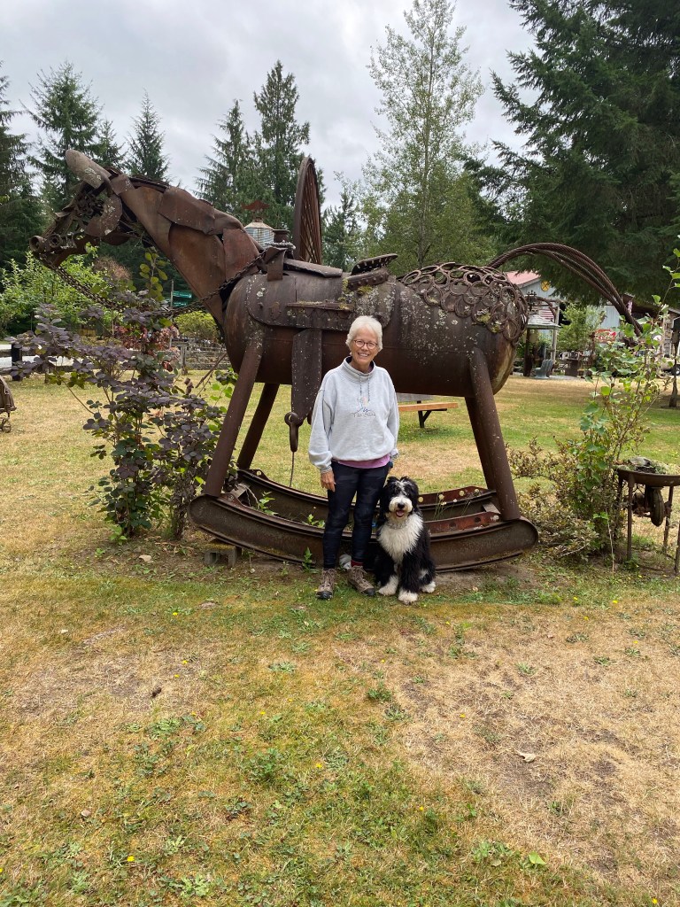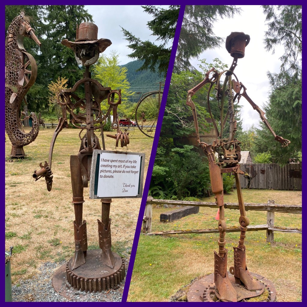 Today we woke to 53° and the weatherman said it wouldn’t get much higher than 68°. He hit it on the head! Wonderfully cool day but along with that came clouds and fog, covering Mt Rainier in the morning. I still was not 100% so Harry said we were not doing high altitudes today. We attended a fairly private-public showing of the life works of…master welder/ metal sculptor, Dan Klennert. It was nice because Finn got to attend, as well!