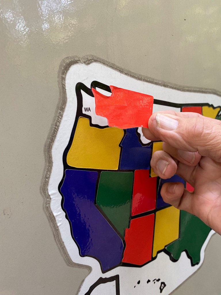 Finn was not quite big enough to put on our Washington sticker. He is six months old today…he will have his official 6 month weigh in tomorrow.