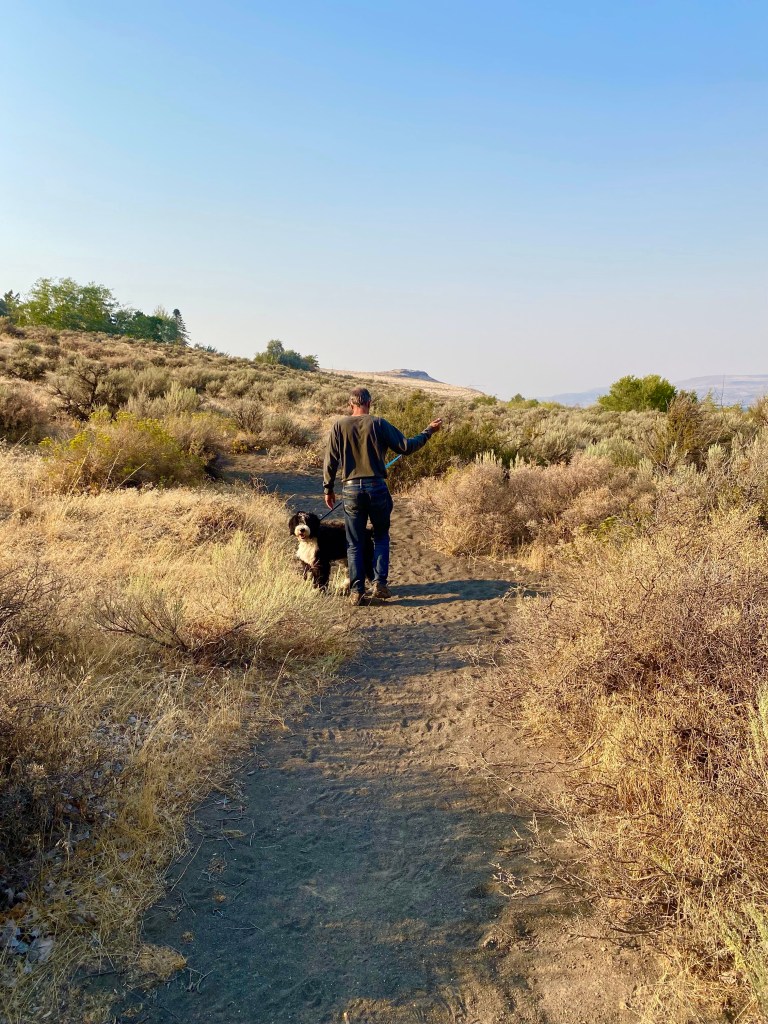Site 8…I spent quite a bit of time picking up pine cones and throwing them out at the back of our site in the tall weeds and sage. Finn has a tendency to secret them in his mouth while we are walking him and they end up in his bed to snack on later.