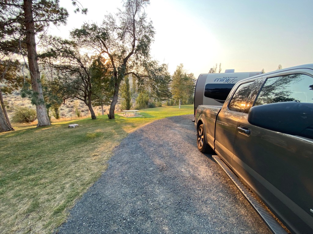 We did find a campground that had space tonight about three hours away, so we left Howard Miller Steelhead Park a day early. We had hoped we would escape the smoke but it seemed to follow us. It is, oh so much better here but when you leave the camper you can smell the smoke on the air and there is a haze over everything!
