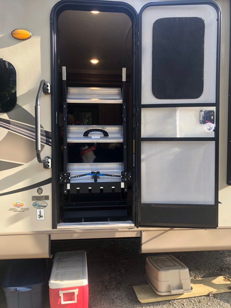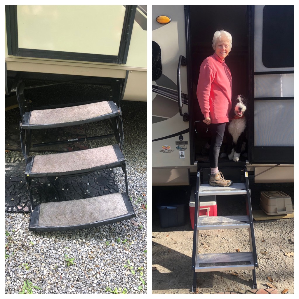 As you may recall, we had trouble on our last trip with the steps…Harry kept fixing it but it was just plum tuckered out, so we replaced them with this super sturdy set! A nice addition!