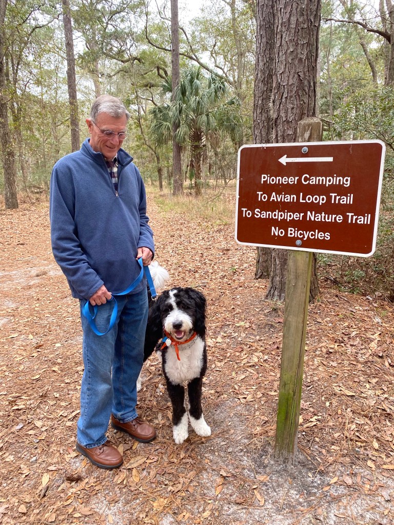 Sunday morning we attended our home church via video feed. We finished up a wonderful series on prayer. Predictions were weighing heavily on a rainy day, but despite the warnings, we were able to squeak in a new hike called the Sandpiper Nature Trail. I love to take pictures but my guys are not always fans. I tell them both to smile…sometimes I get a smile and sometimes I get the smile but they are not looking at me…