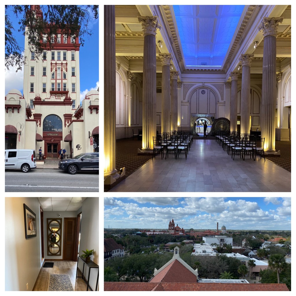 The upper right picture is an expensive wedding venue that used to be a bank. It resides on the first floor. The two bottom pictures are taken from the offices with views of Flagler College.