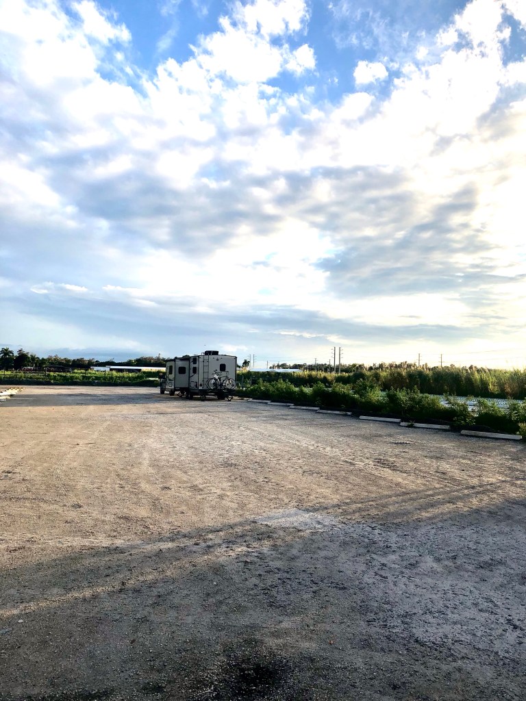 Yesterday, we woke up and it was raining cats and dogs. Realizing it was going to storm all day…we decided to move our camper a bit closer to our next campground in the Keys. Harry called a Harvest Host in Boca Raton and they said come on! We camped locked in their parking lot last night. We bought some spectacular fruits and vegetables there before they closed for the night!