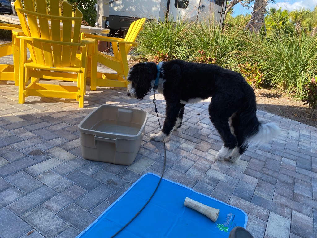 Side note…we just thought he might want to cool off in the water and the ball in the water was to entice him. So much for that idea!