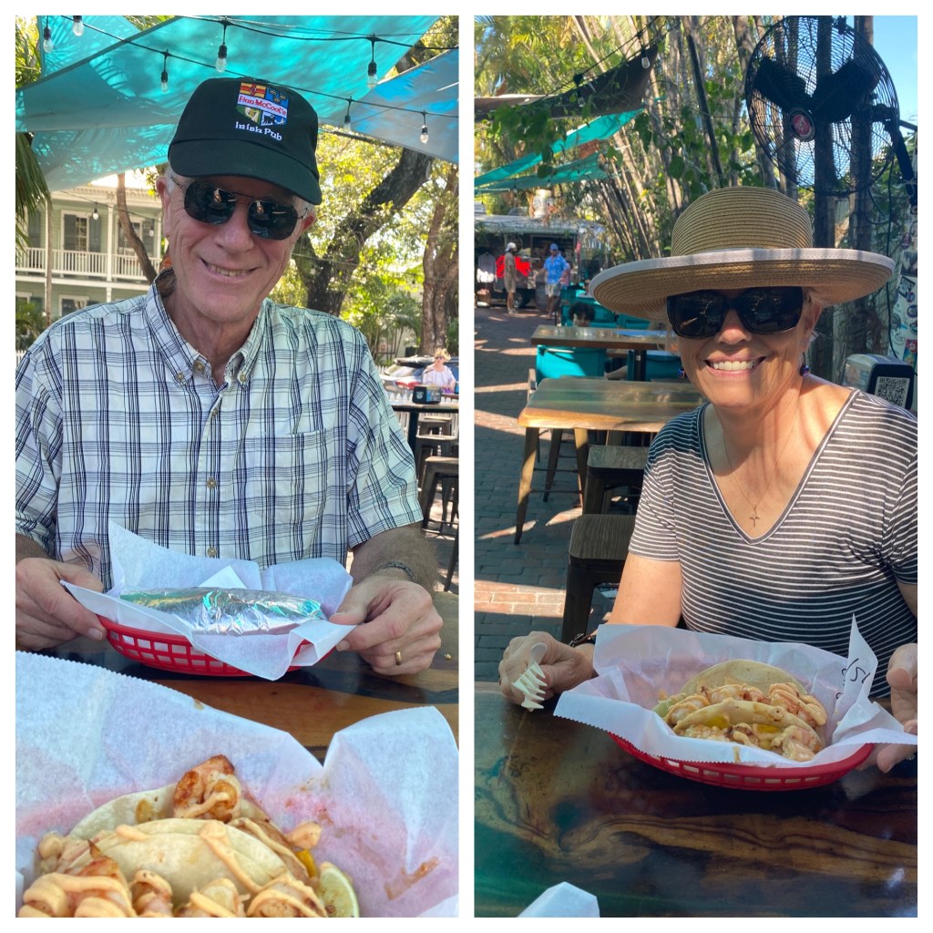 Well, check …we got lunch, and check on getting our bearings,and a semi- check on the pie. Harry got a piece of pie but it wasn’t quite what he was looking for…So that will be on tomorrows’s agenda. Finding Key Lime Pie that measures up!