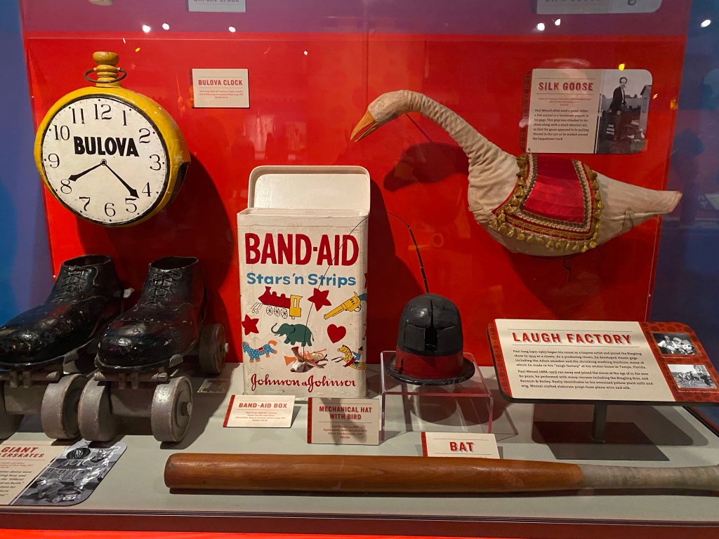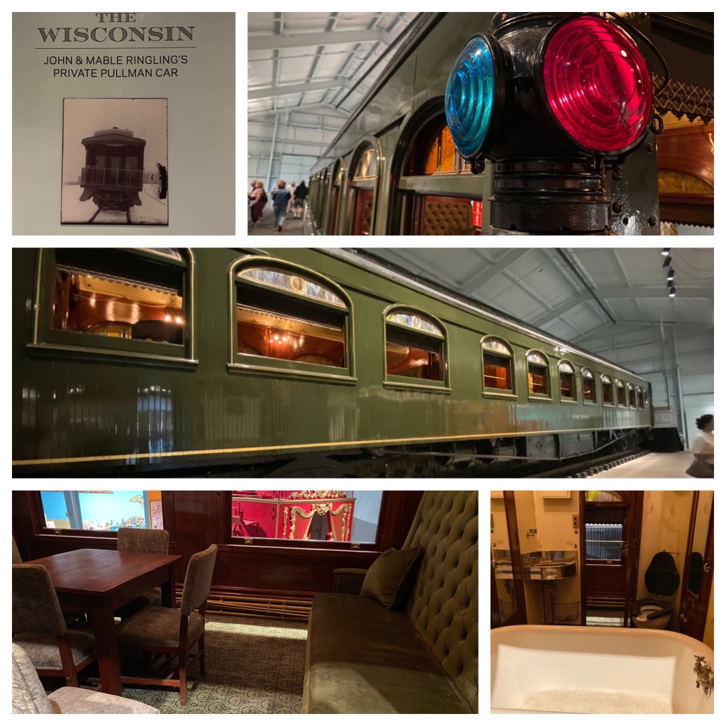 Bring in the clowns.Some of the tools of the clown trade.This Pullman train car was purchased, the exterior renovated and then transported to Sarasota to it’s new home. It was purchased in 2003 and was highly prized because it had been John and Mable Ringling’s Pullman during their hay-day! What we found interesting was that it had been in very poor condition when the museum bought it. It had spent several decades in Morehead City , NC serving as a fishing cabin for railroad officials.