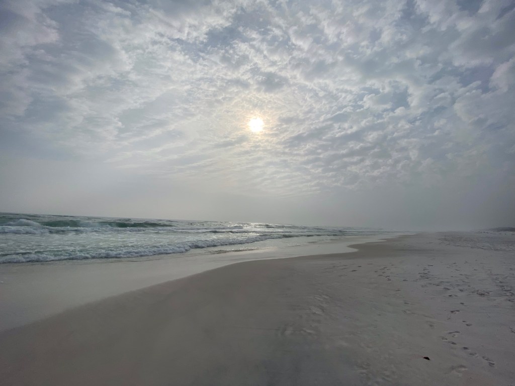 We both think this is the whitest, finest, cleanest sand we have ever seen on a beach. It is unbelievable how clean it is…no debris. For all of you shell hunters, it also means very few shells at all on the beach. It is a disappointment for shell seekers but this is the first time I have felt like it was safe to walk and not step on anything dangerous. The Ranger explained there is a sandbar that runs along in front of this beach and it collects all of the shells and all of the flotsam.