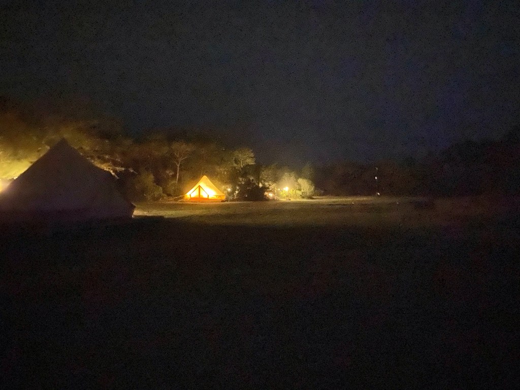 Last night on our walk with Finn, we walked over to the glamping tents neighborhood…we think it looks neat at night!