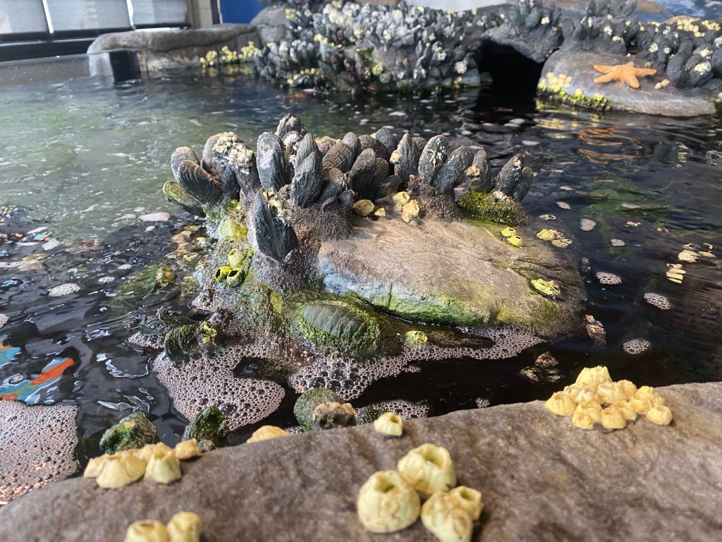 This was a very unique visitor’s center with doors open wide and just a few steps across the hall were another set of doors opening out onto the ocean. See their unique aquarium below!