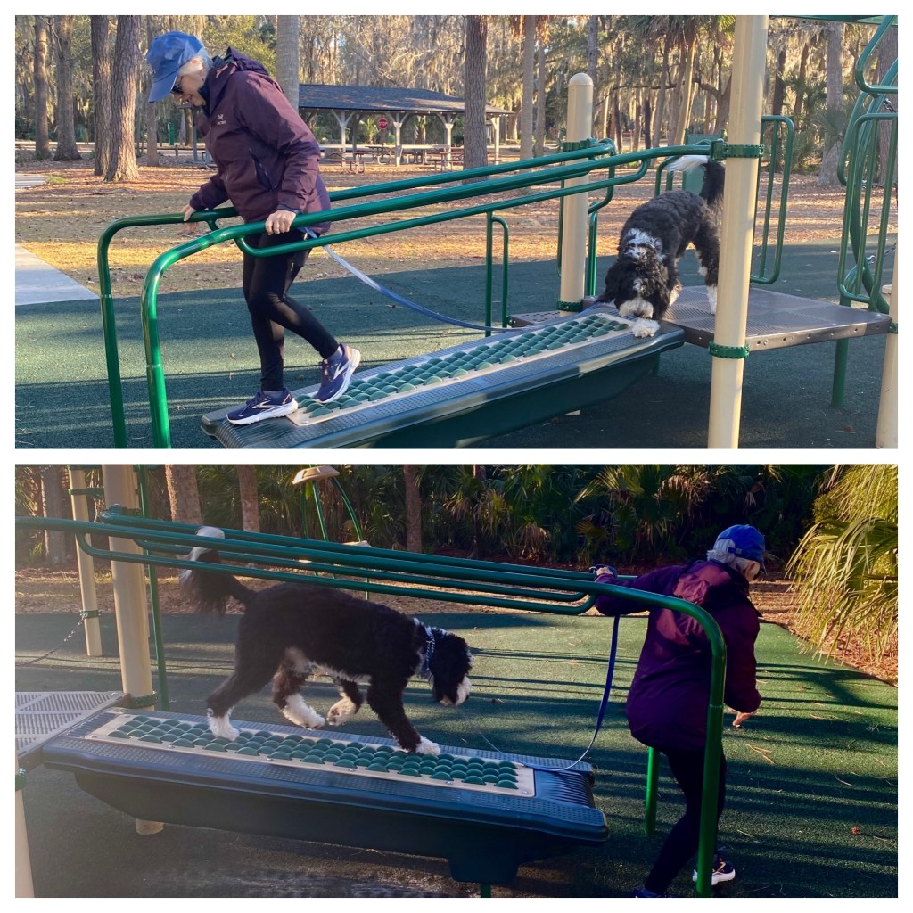 Started our day with exercise, some walking and we took advantage of the park’s athletic equipment.
