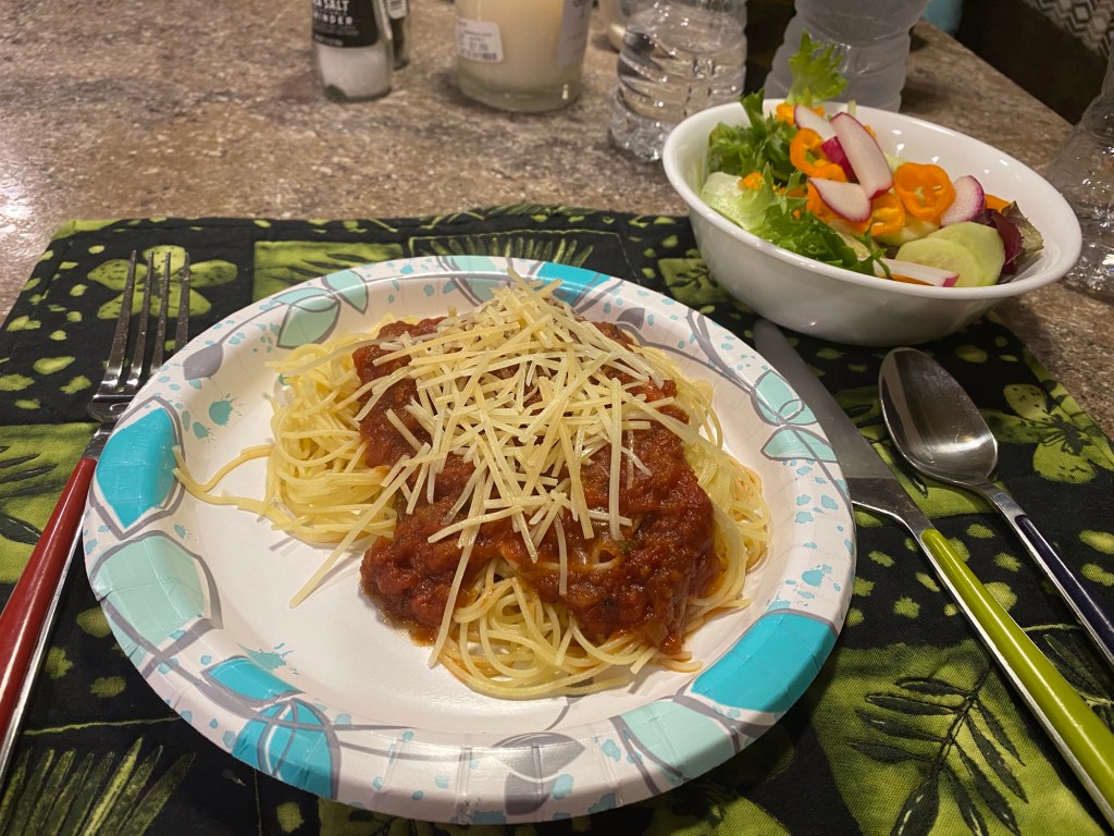 Today was a travel day , as you can see by our new location. Weeks before we begin a new trip, I start doubling up on my cooking. For instance, if I make soup, I make enough to eat that evening at home and freeze one or more to take on the upcoming trip, in our freezer. Normally, each container is labeled with what it is and cooking directions, if needed. This way, on travel days, we defrost as we go and dinner only has to be heated up when we arrive. We have been depleting our freezer food stash, so for tonight we took out what we both thought was spaghetti sauce…but there was no instructional label to really assure us it was a correct assumption. But, hey…it was red and smelled like …frozen spaghetti? But alas, it was simply frozen tomatoes from our 1 tomato plant we had last summer…no meat, other veggies or spices. So we had a pretty high carb dinner tonight. It wasn’t terrible but we wouldn’t say let’s make this again.
