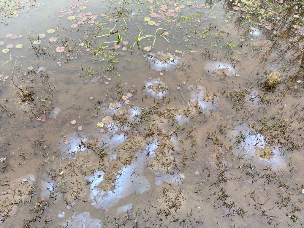 Would love help identifying what the white milky substance is on the surface of the turtle pond from earlier blog pages. Today, it was all over the place. Is some kind of spawning going on? Dan Johnson if you are following…could you help us? You are our ask a biologist phone a friend.