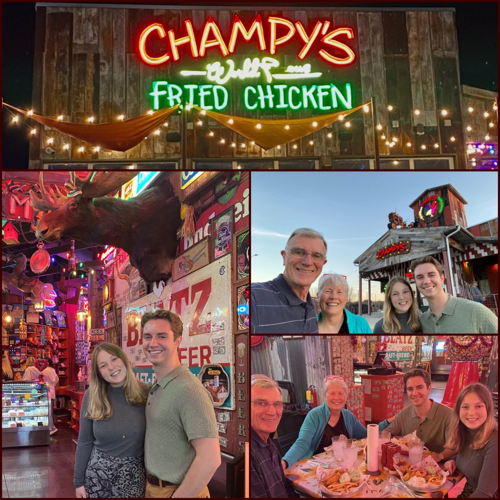 It has certainly been a while since we have taken to the road. At least a year. We left this morning with warmer weather on our minds. Stopping early in McDonald, Tennessee, afforded us the time to de-winterize our camper, just outside of Cleveland , TN. Our eyes were on the prize of taking our oldest grandson, Nicholas and his wife, Erica out to eat. Champy’s… a first for the four of us. Although they are known for their chicken, the catfish had the better reviews from our crew.
