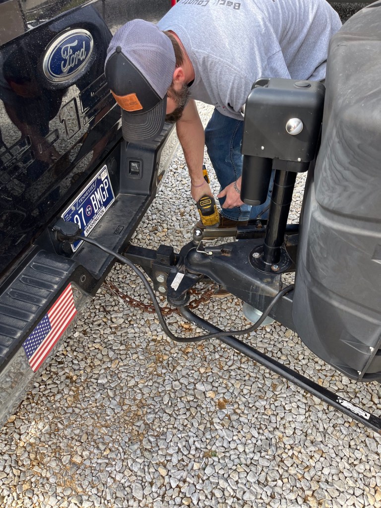 This morning started off with Harry noticing our truck hitch just seemed to have too much play in it. So we stopped at a nearby camper business. They were very helpful using a pneumatic wrench to synch in down a bit.