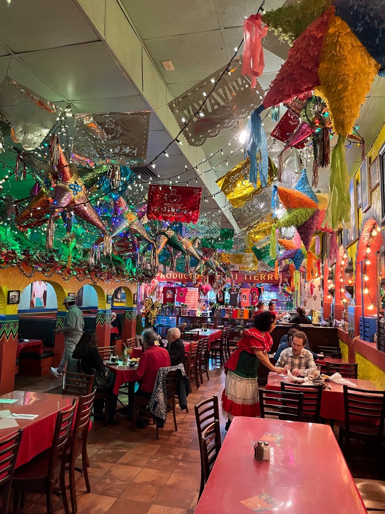 There is never a lack of color with the Mexican culture. Really bright and joyful! They were playing country western music over the sound system!Our waitress is in the middle top! Don’t you love their festive serving dresses?