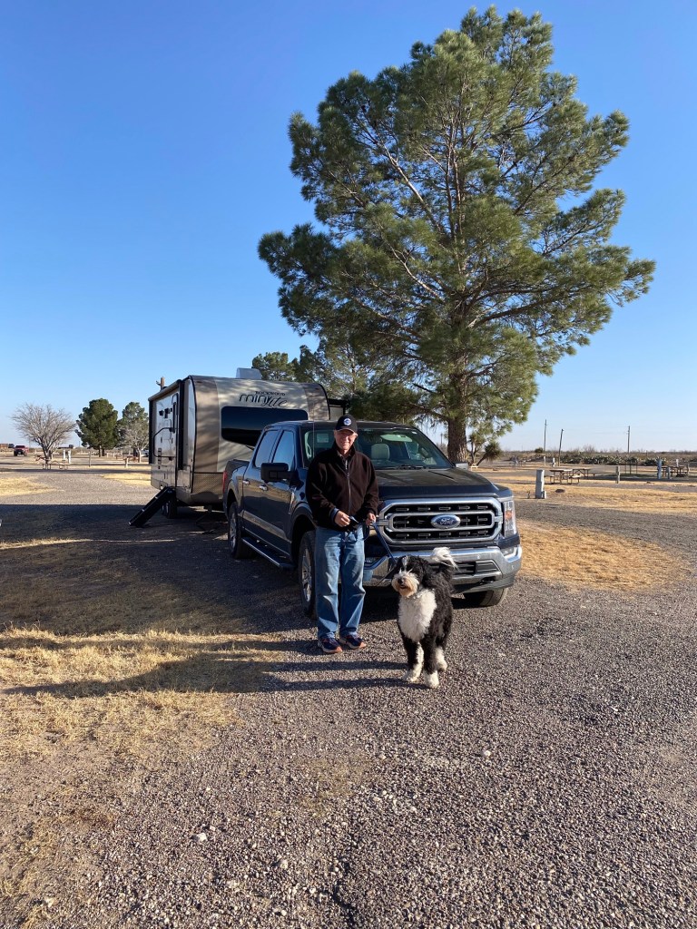 We landed at Fort Stockton much later than expected! The wind gusts were miserable for keeping the truck and camper on the road! Harry felt as if he had been in a battle when we arrived!