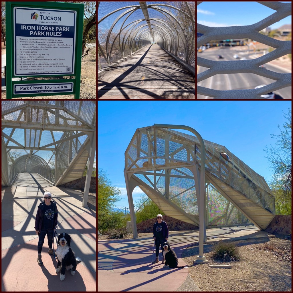 We drove under this bridge. It’s called the Rattlesnake Bridge. We twisted around several roads and found Iron Horse Park, where the Rattlesnake resides.