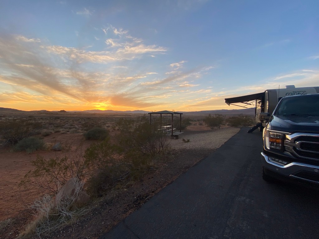 What a beautiful sunset! Beautiful views on your drive as well. Did you make s’ mores around the fire?