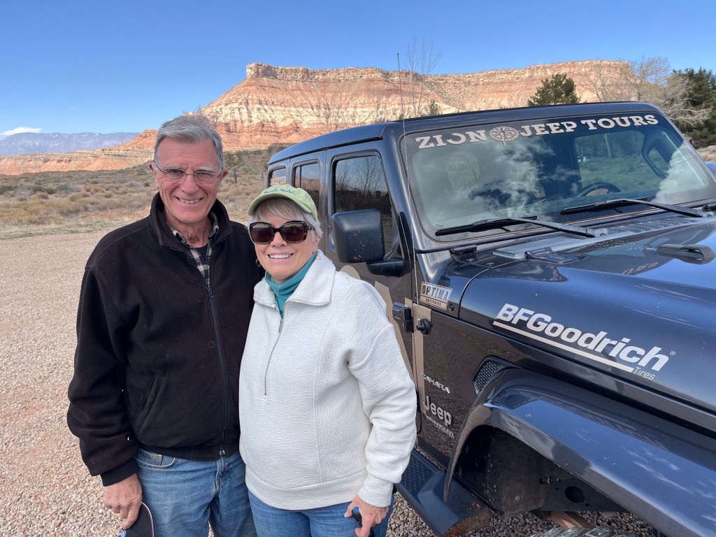 This morning we met Eva from Zion Jeep Tours. She drove us in and out of Zion. It was a beautiful morning, we were so glad we decided on the morning trip.This was a part of Zion we had never explored on our other two trips here. Eva had warned us to bring winter coats as we were going to be going up in elevation on this trek.Eva was very knowledgeable and we so enjoyed learning more geology. It is difficult not to be fascinated with tectonic plates, volcanic craters and igneus rock when you are in this gorgeous God breathed environment.