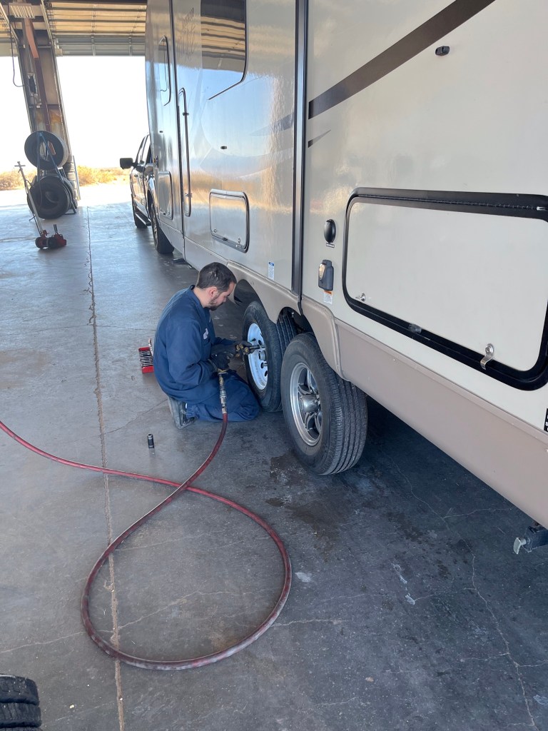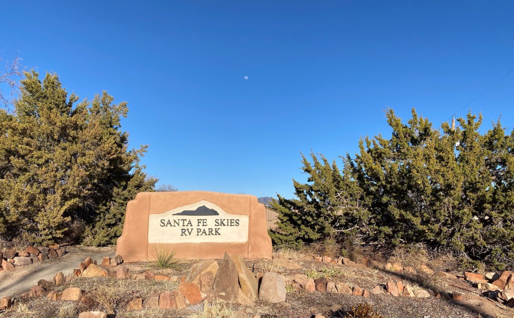 This time, we were just driving and heard and felt an explosion. BOOM! We pulled over on a very busy highway and sure enough we had a flat on the left, this time. We drove on the berm for several miles…we were thankful this road had a wide berm. Many don’t! We found a tire place right at that exit. He didn’t have a tire our size but put on our spare. Then 10 minutes away we found a large tire shop and they replaced it. Then on to our next campground in Santa Fe.