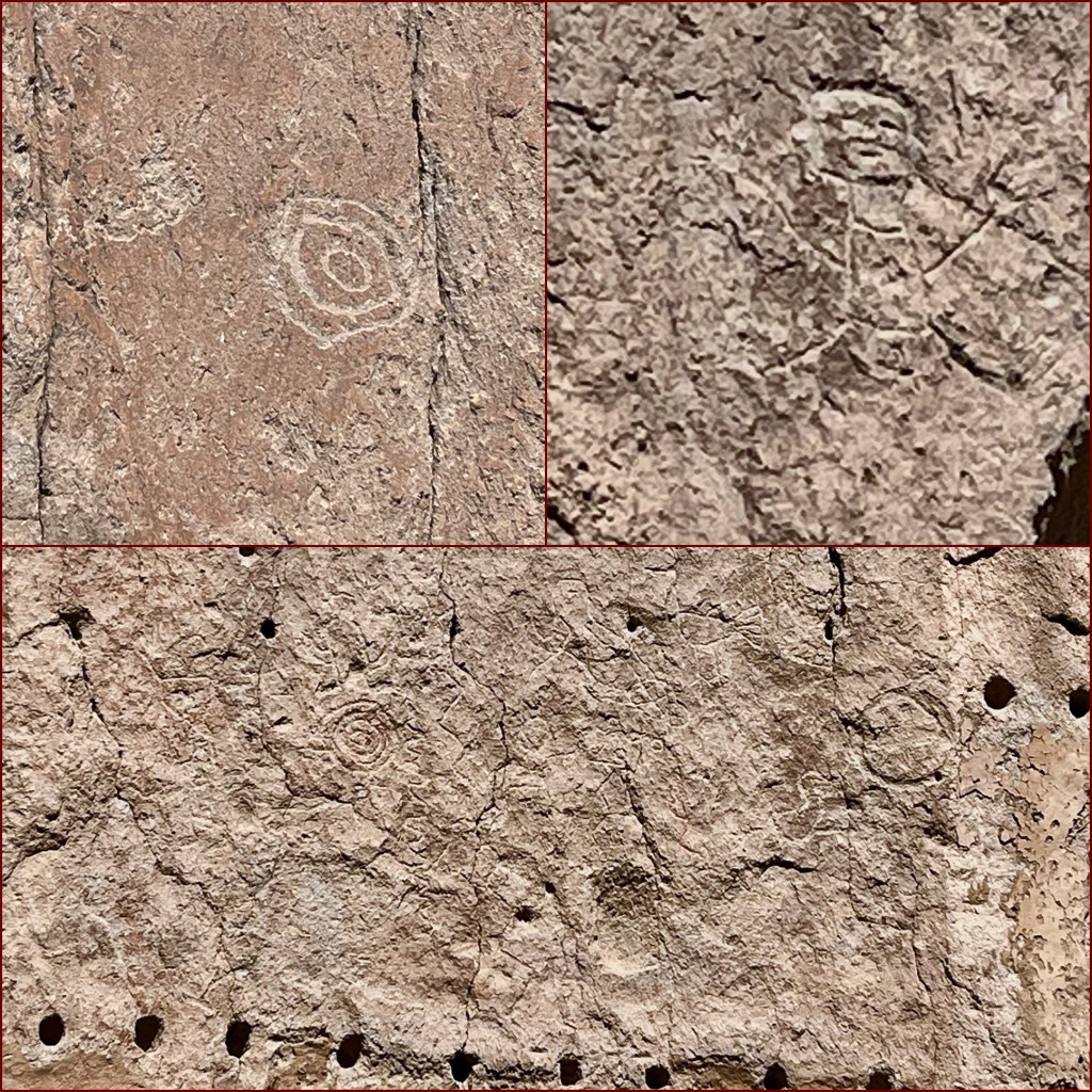 These Petroglyphs found in three different places in Bandelier are different than those found in Canyon de Chelley. In Bandolier they are carved. Canyon de Chelsey’s are painted.