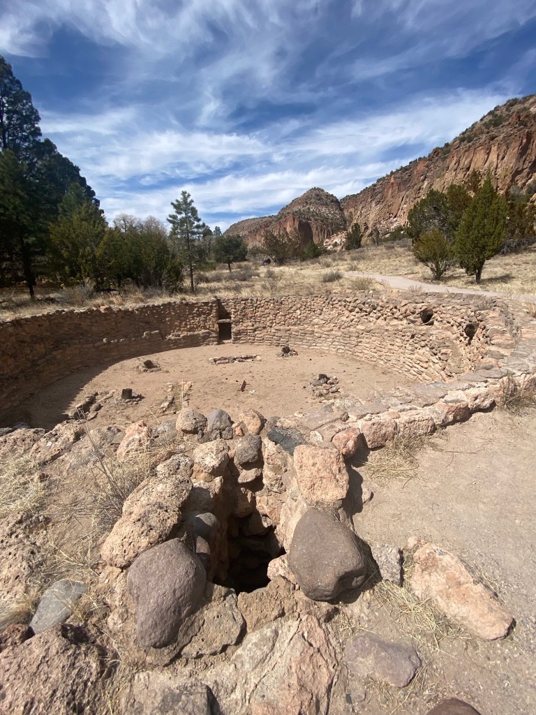Kiva- a circular structure used by the Puebloan people for rites and political meetings. It would have had a roof on it when in use.