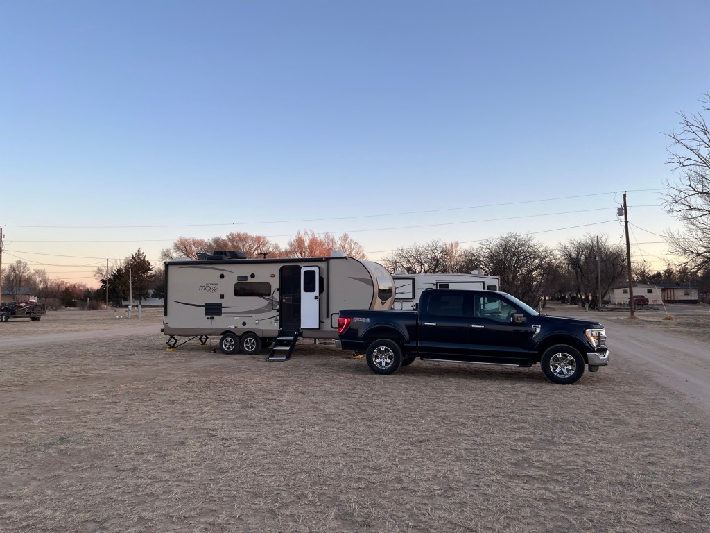 We left Santa Fe bright and early in hopes of avoiding the high winds and snow they were predicting. Harry thought we might just feel tail winds as we went…and so we did! Every highway we were on, had placed action signs with flashing lights warning about the high winds. We were so thankful we made it safely…however, we haven’t had the best welcome!