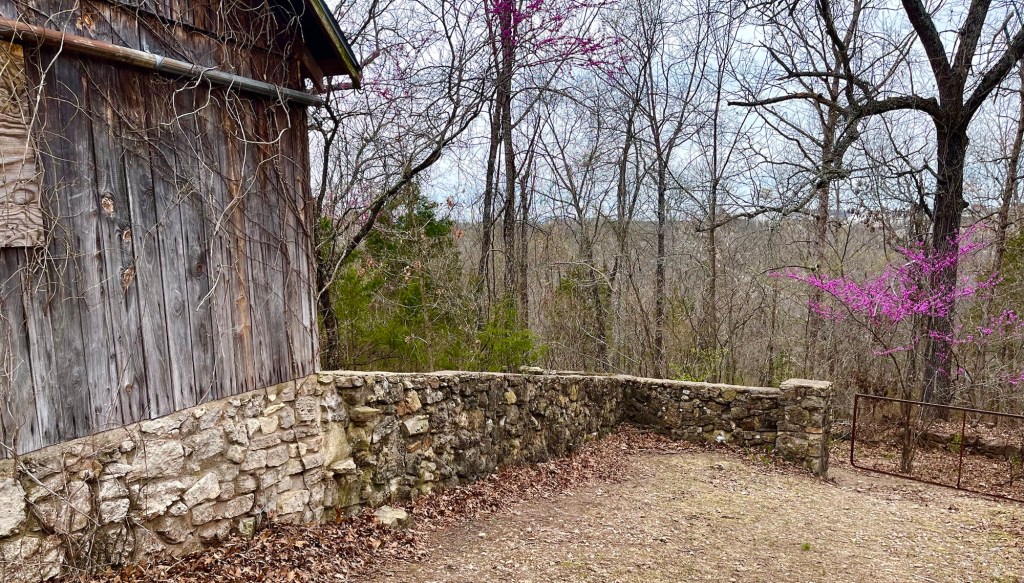 Dr. Lyle Owen retired as a professor at the University of Tulsa and moved his family to this property full- time. He was the property’s third owner and he and his family had a very self sustaining life-style. He built the entire perimeter stone wall from 1937- 1945. All of the plants we saw today were started many years ago by Mr. Owen. He also built 340 steps to the lake. I did not make that descent. He lived here until he was 92 and then the land was drafted to the city of Branson.