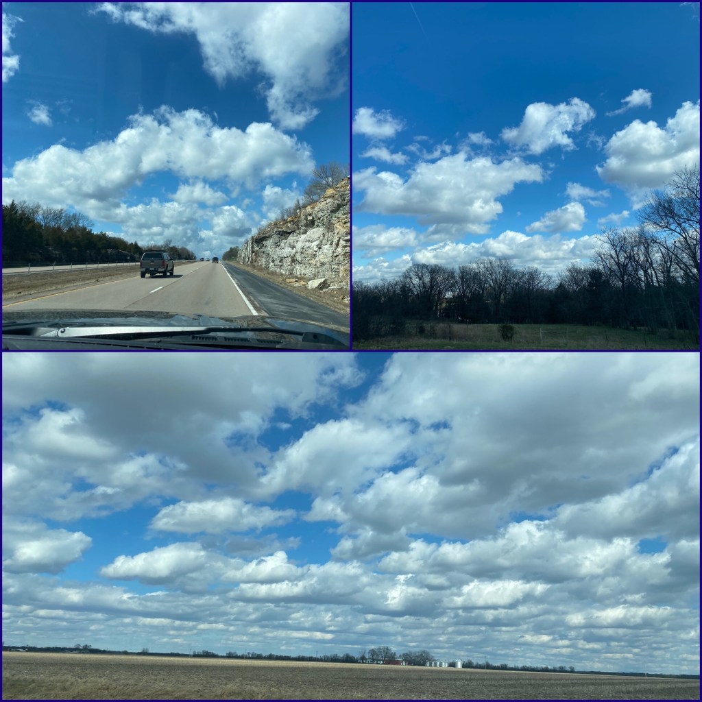 Today was a fairly uneventful drive day, which is what we like. The wind was chasing us and the clouds were, for the most part delightful.