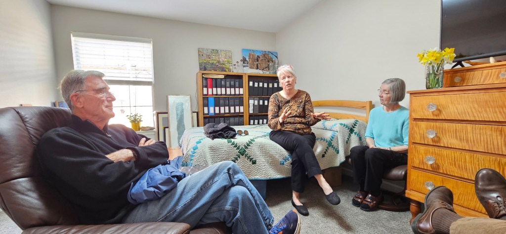 Our dear friends, Karol Lynn and Dan moved to Kirksville, Mo to be closer to their daughter, Amber. We were a day’s drive away so we headed a bit north to see them in their new apartment. We even made it there before the maintenance man put up their artwork. Maybe we can see it next trip!