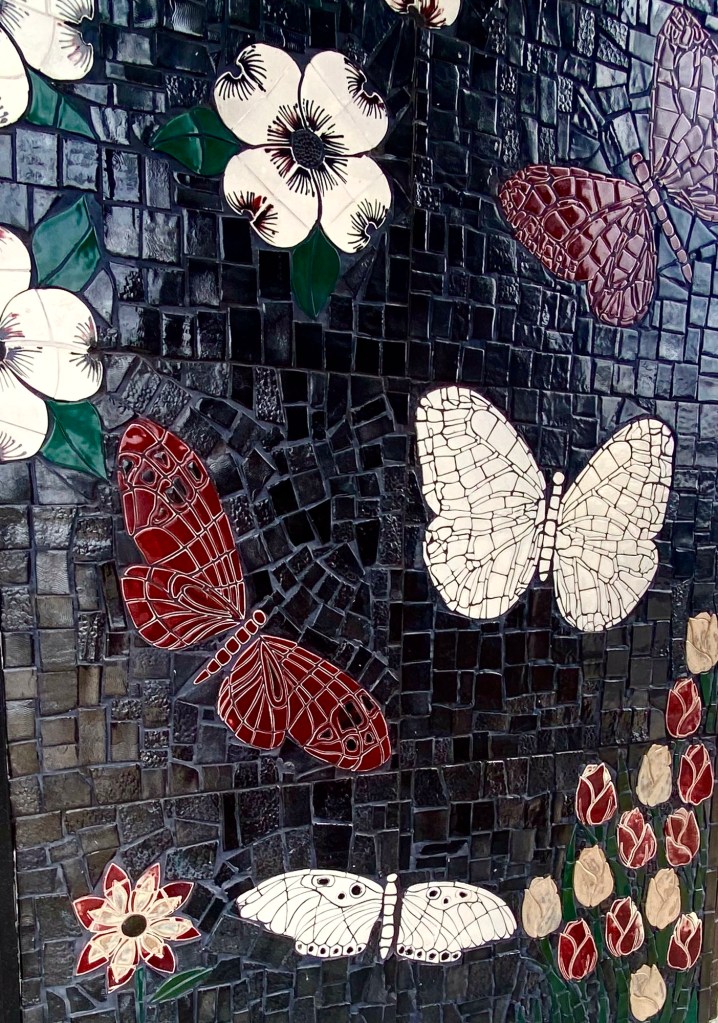 This probably doesn’t do this wall-art work justice but it is at least a good taste. This was a community effort and it was fun to find out Dan and Karol Lynn’s daughter, Amber and Ayiana , their granddaughter and their Girl Scout Troop, participated in the making some of these tiles!