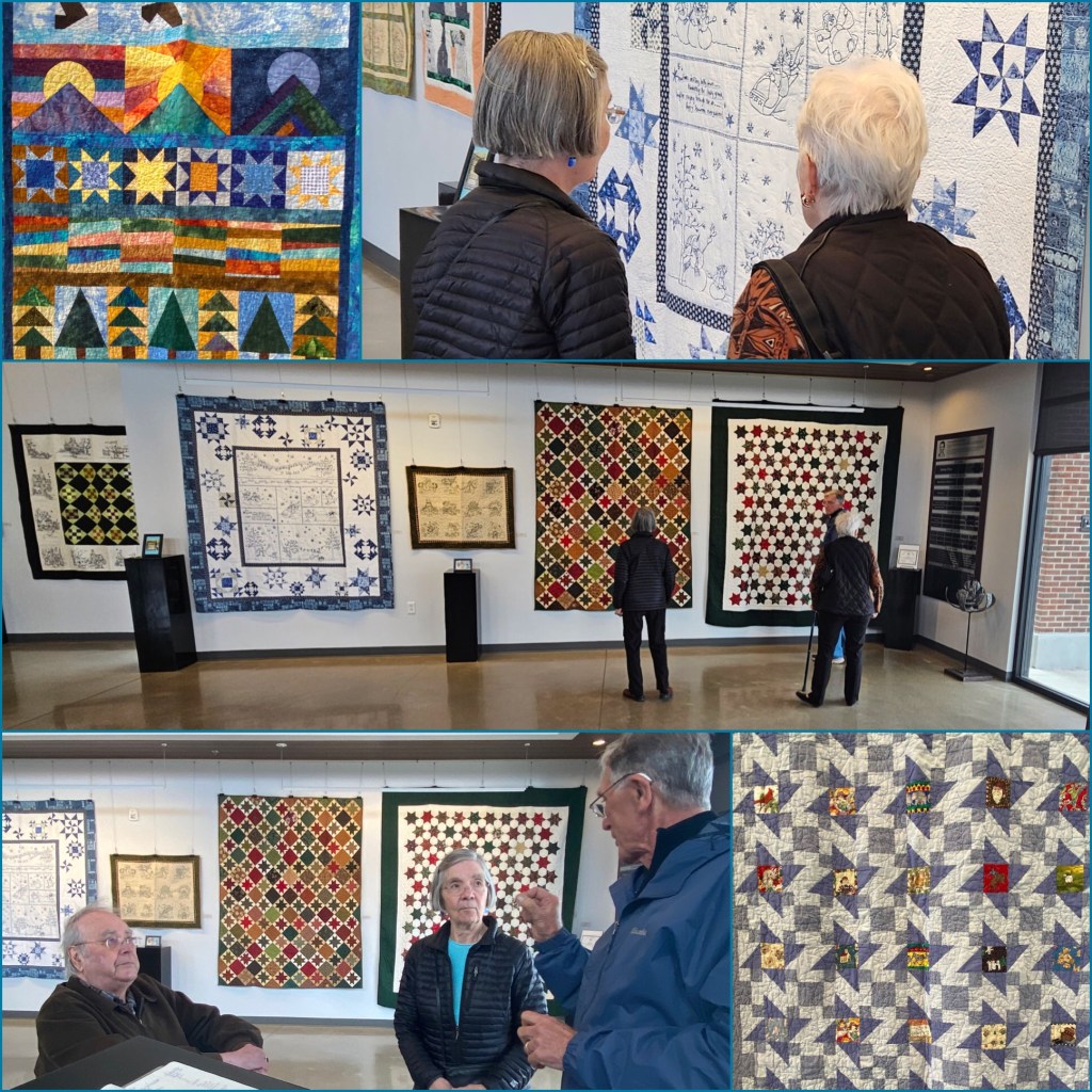 Bottom shot- Harry is mesmerizing Dan and Karol Lynn with his quilting knowledge!😊 It was fun to see what this guild has been working on this year. Many included embroidery in their quilts!