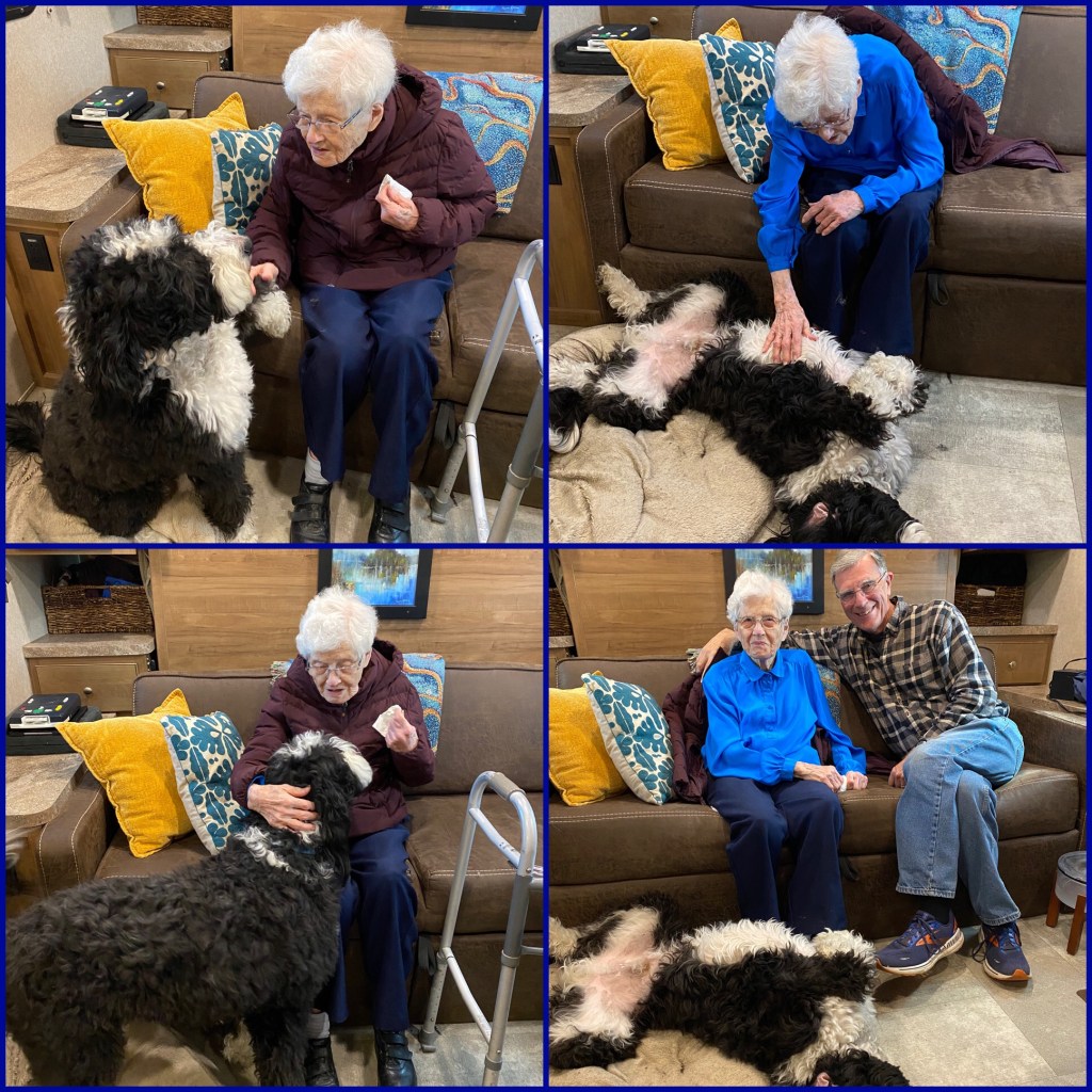 Finn and Mom made googlie eyes at each other the whole time. He had her wrapped around his substantial paw at first sight!🐾