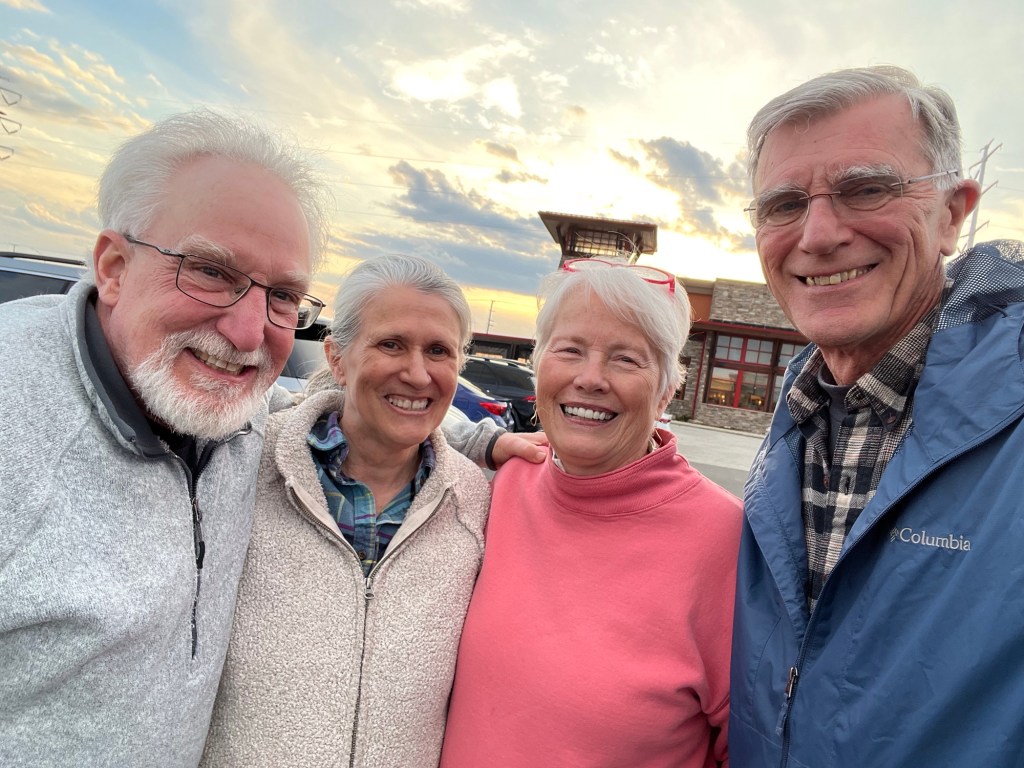 We ended up by having a wonderful dinner with Craig and Laurie, my sister and brother-in-law at a new to us restaurant, called The Lazy Dog. If you ever get a chance to go…all of our meals were tasty, the architecture is beautiful…post and beam and they didn’t push or hurry us out! We got to catch up on all of the family happenings!